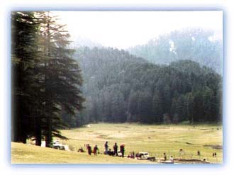 Khajjiar, with its "lake", lovely turf and deodar forests.