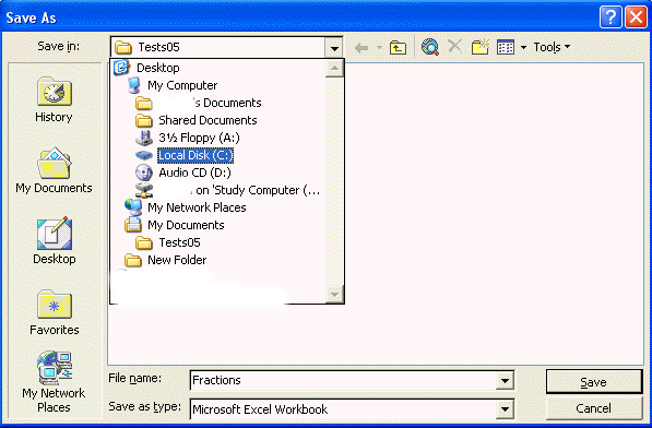 Cliquez sur petite flèche noire descendante elle se situe à droite de la boîte pour Sauver dans. . Une liste des disques amovibles ou bandes magnétiques apparaît sur un menu (voir l'image ci-dessous).