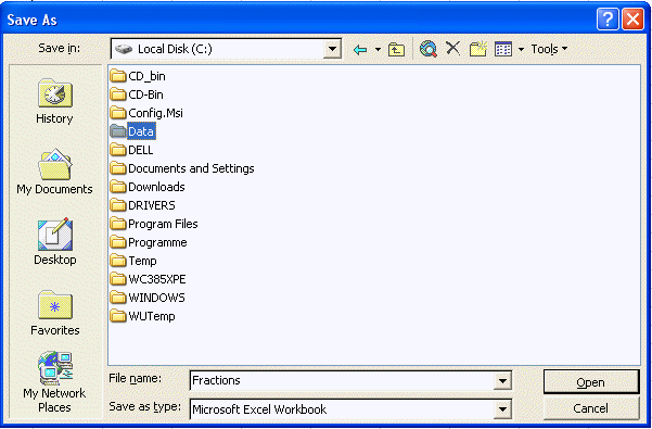 Vous pouvez maintenant trouver une liste de dossiers auxquels il est possible d'accéder sur la bande magnétique C: (voir ci-dessous). Dans notre exemple, nous pouvons voir le dossier Données sur la liste. Nous cliquons alors sur Data et puis cliquons sur Ouvrir (ou cliquons une seconde fois sur Données).
