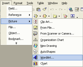 1. Cliquer sur l'Insertion | l'Image | WordArt sur la barre de menu.