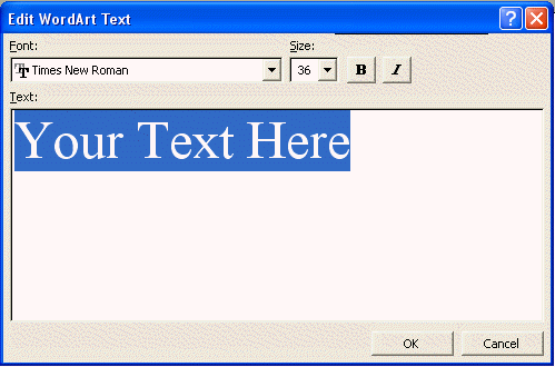 La boîte de dialogue de Texte WordArt D'édition apparaîtra.