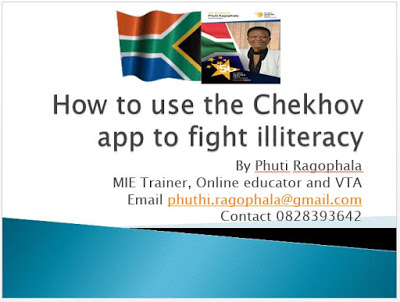 We are pleased to announce that our next free webinar, ‘Explore the Chekhov app for online writing” will be held this coming Thursday 31st August at 3:15pm. Our speaker will be Phuti Ragophala, well-known in many international and local education circles and also a Microsoft MIEExpert Educator from Limpopo.